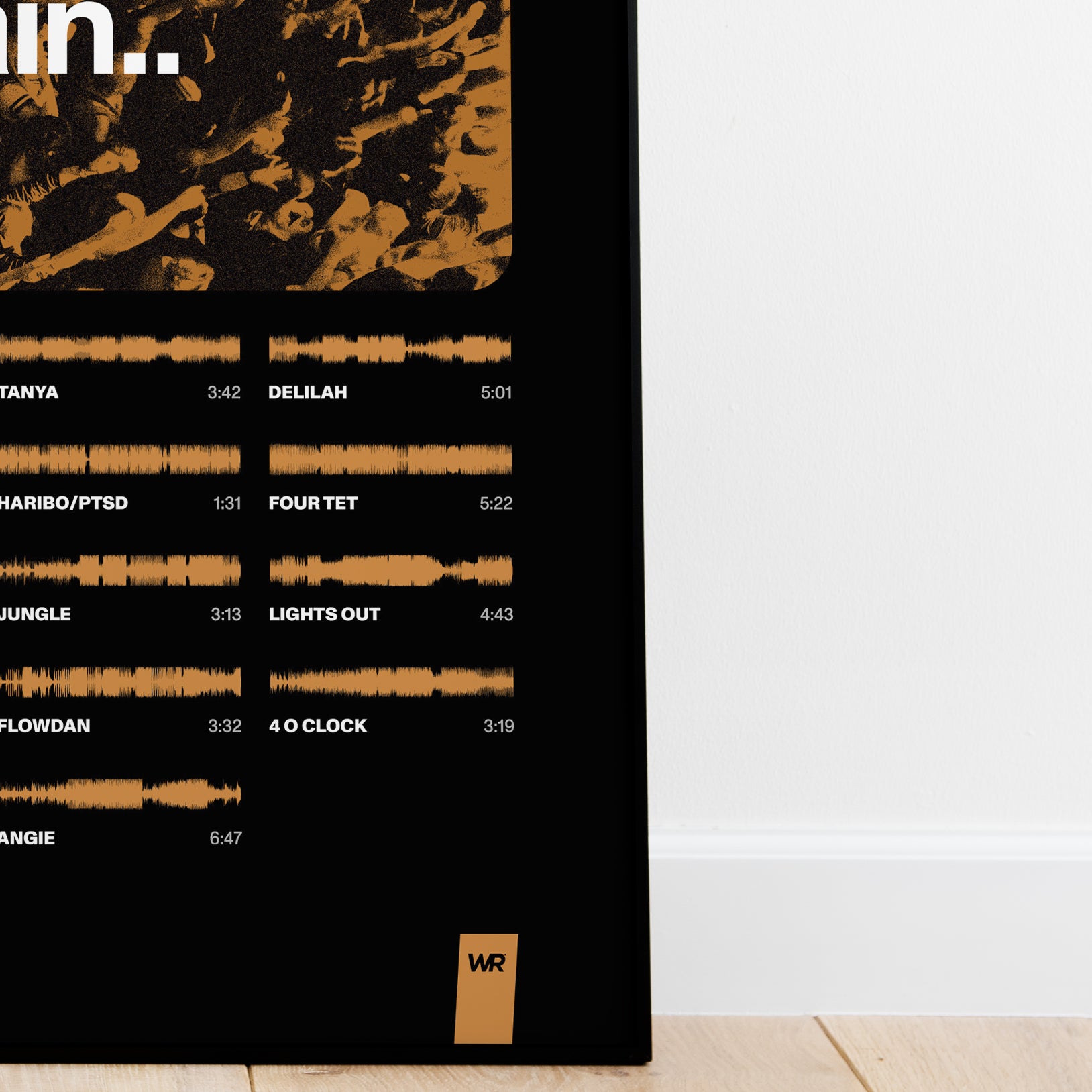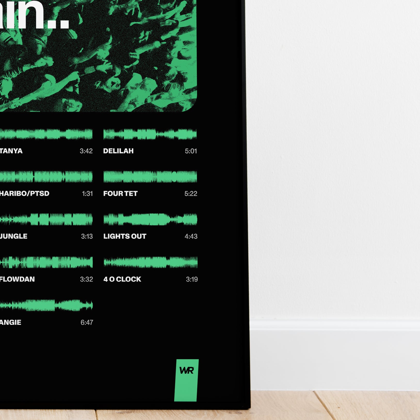 Make waves in your space with this unique soundwave album cover art for "Boiler Room Set (London 2022)" by Fred Again, available in three sizes: 16x20, 18x24, and 24x36 inches. Each piece is printed on high-quality 150GSM paper using industry-grade archival inks. Elevate your artwork by pairing it with a handcrafted, 100% hardwood frame in black, white, or natural wood, complete with hanging hardware for easy install & display. Certified authentic, each track’s soundwave is extrapolated using The Wav Room's lossless audio transcribing process, making it a must-have for Fred Again music enthusiasts.