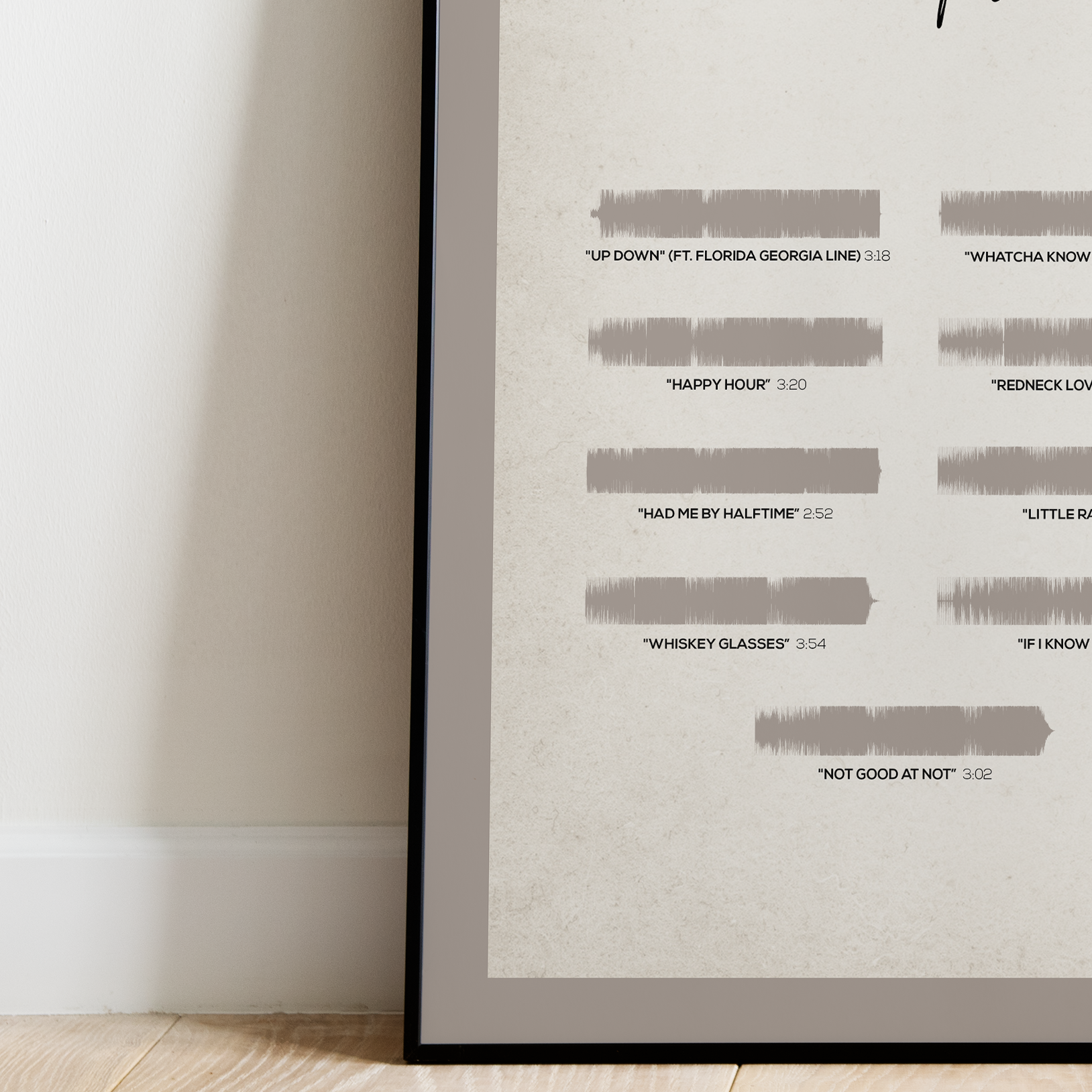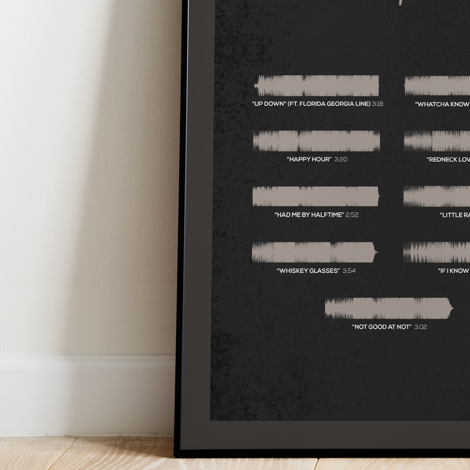 Make waves in your space with this unique soundwave album cover art for "If I Know Me" by Morgan Wallen, available in three sizes: 16x20, 18x24, and 24x36 inches. Each piece is printed on high-quality 150GSM paper using industry-grade archival inks. Elevate your artwork by pairing it with a handcrafted, 100% hardwood frame in black, white, or natural wood, complete with hanging hardware for easy install & display. Certified authentic, each track’s soundwave is extrapolated using The Wav Room's lossless audio transcribing process, making it a must-have for Morgan Wallen music enthusiasts.