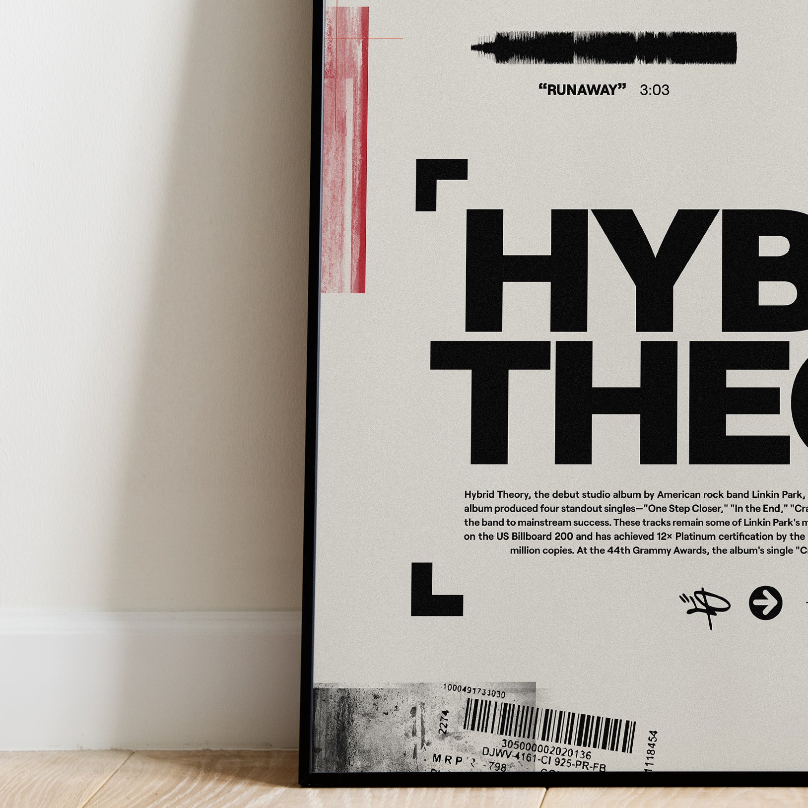 "Hybrid Theory," released on October 24, 2000, is Linkin Park's debut studio album and the first of their extensive discography. The album was produced under Warner Bros. Records and features notable production from Don Gilmore. It received critical acclaim for its innovative blend of nu-metal, rock, and electronic elements, leading to multiple awards and accolades, including being certified Diamond by the RIAA. "Hybrid Theory" is significant for its influence on the music scene of the early 2000s, helping to define the nu-metal genre and establishing Linkin Park as a leading force in alternative rock. Its themes of angst and emotional struggle resonated with a wide audience, solidifying its status as a landmark album in modern music history.