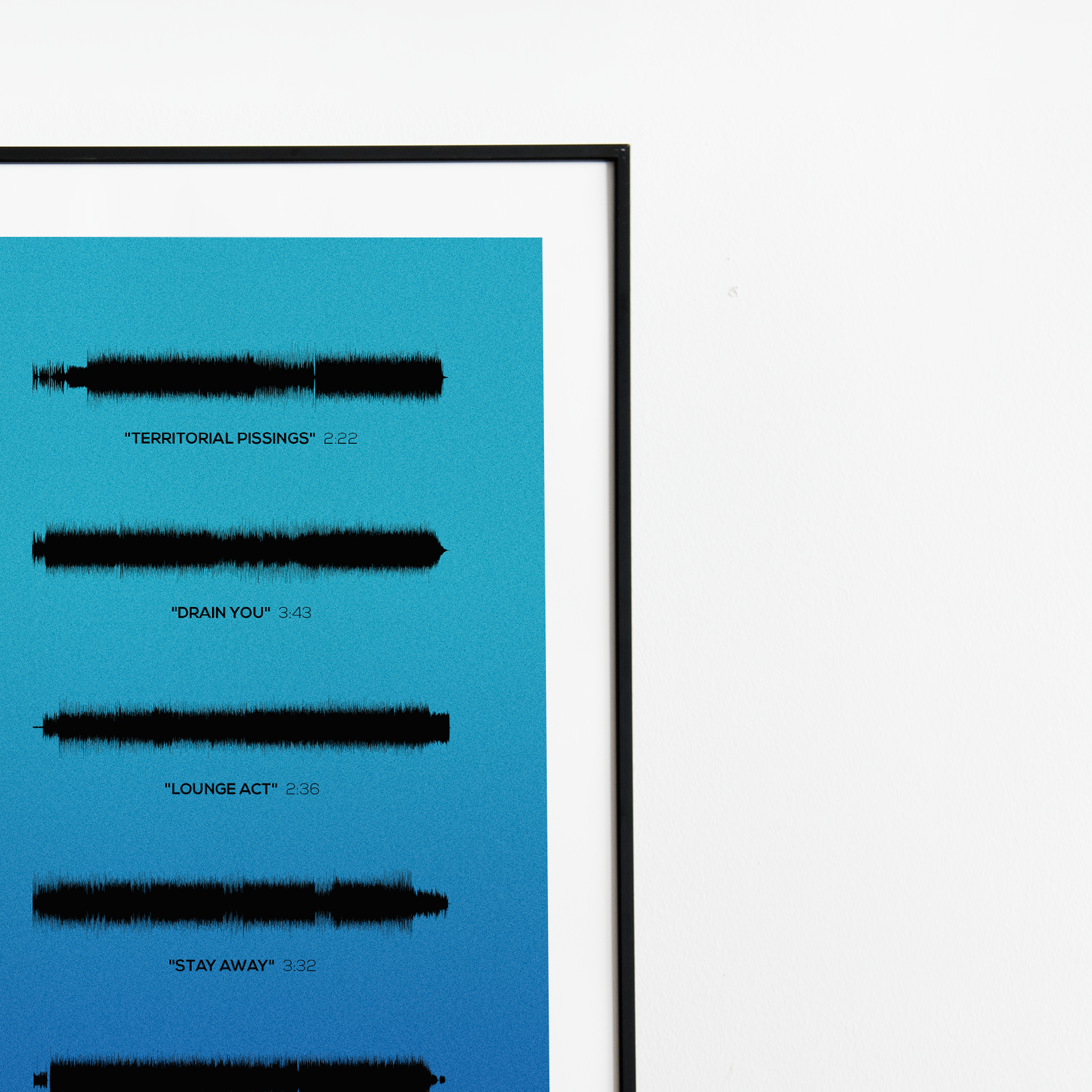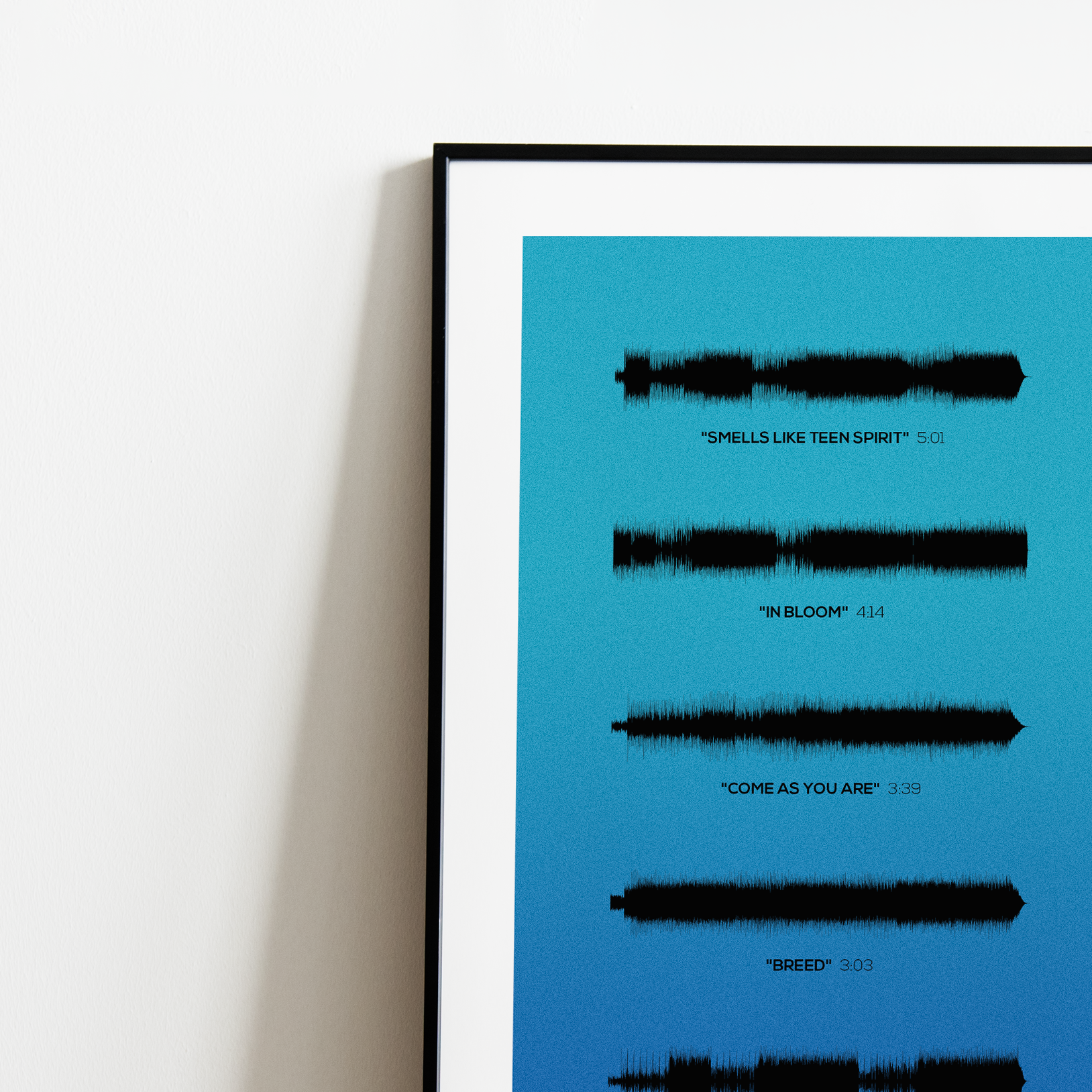 Make waves in your space with this unique soundwave album cover art for "Nevermind" by Nirvana, available in three sizes: 16x20, 18x24, and 24x36 inches. Each piece is printed on high-quality 150GSM paper using industry-grade archival inks. Elevate your artwork by pairing it with a handcrafted, 100% hardwood frame in black, white, or natural wood, complete with hanging hardware for easy install & display. Certified authentic, each track’s soundwave is extrapolated using The Wav Room's lossless audio transcribing process, making it a must-have for Nirvana music enthusiasts.